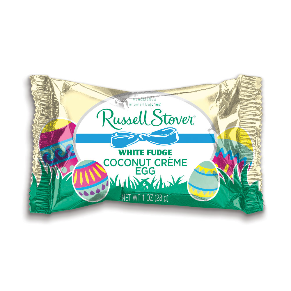 This Easter enjoy a delicious White Pastelle Coconut Creme Egg, now available in a case of 36 eggs. Russell Stover makes a succulent white pastel chocolate and pairs it with a superior coconut creme that will have your taste buds craving this Easter egg all season long! | 1 Oz. White Fudge Coconut Cream Eggs, Case Of 36 | Easter Seasonal | Chocolates | By Russell Stover