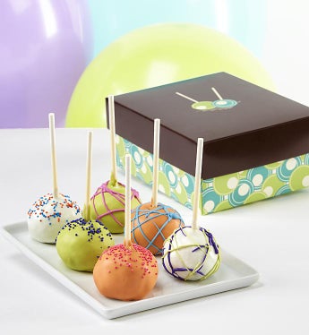 Make their birthday truly special with this incredible gift! These rich, dark and moist chocolate truffle cakes on a stick are so incredibly decadent, it’s no surprise that celebrities love’em, too. These trend-forward treats are lovingly hand-made by a small artisan bakery that’s been featured on The Today Show and Rachel Ray! The luscious truffle cake centers are covered with a deliciously crisp, confectionary exterior of sweet icing, then hand-decorated to perfection with drizzle, and festive confection dots. Easy to share, these gourmet truffle cake pops are an indescribably delicious, A-list dessert that they’re certain to love!
