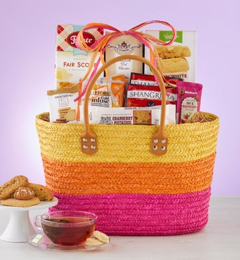 Make their day with our Brunch Time Tote Basket. It has everything needed to prepare a delicious brunch including Fisher’s – Fair Scone Mix, Biscotti Brothers – Cranberry Pistachio Biscotti, Twinings – Cold Infuse Tea bags, Shangri La – Organic Breakfast Tea and more! They’ll love the stylish colorful tote and use for seasons to come!