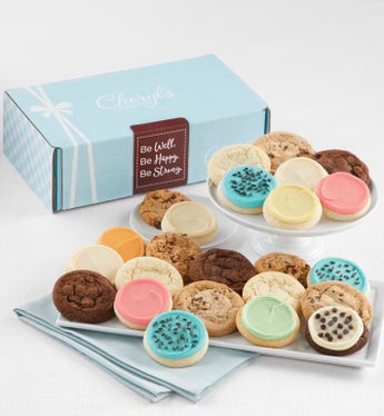 Send sweet treats to friends, family and coworkers with a box of individually wrapped cookies including Cheryl’s buttercream frosted vanilla cut-outs, triple chocolate frosted, chocolate chip and their buttercream frosted cut-outs with chocolate sprinkles. Guaranteed to bring a smile!