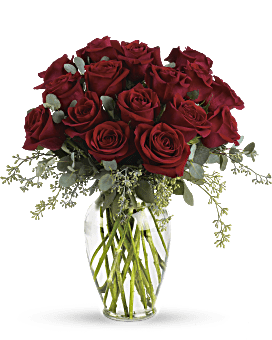 Timeless red roses eloquently pay tribute to a lost loved one. 16 red roses are arranged with beautiful eucalyptus and a lovely ming vase. Say it with flowers, when no words will speak the feelings in your heart. 30 red roses are arranged with beautiful eucalyptus and a lovely ming vase. Say it with flowers, when no words will speak the feelings in your heart. 42 red roses are arranged with beautiful eucalyptus and a lovely ming vase. Say it with flowers, when no words will speak the feelings in your heart. Orientation: All-Around. Teleflora Forever Beloved – Red – Flower Delivery, Premium Arrangement