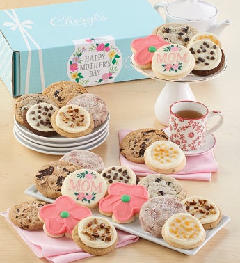 NEW! Send Mom a box of her own cookies! We’ve included 8 different individually wrapped flavors featuring our NEW limited-edition buttercream frosted cut-out cookies topped with an edible confection disk, and additional flavors like peaches and cream, frosted chocolate chip, butter pecan, triple chocolate chip, blueberry muffin and our NEW ruby raspberry cookies. This delicious assortment is delivered in our classic bow gift box. Kosher