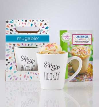 Send this entertaining gift set to someone special in your life for any occasion or send it to yourself just because! This gift set comes with a white stoneware mug with fun quote “Sip Sip Hooray!”, and delicious Molly & You – Mug Cake Mix. Buttery Vanilla mug cake with a burst of celebration sprinkles to fill the mug with so much joy! Once the cake is gone, this adorable mug can be used at any time of the day.