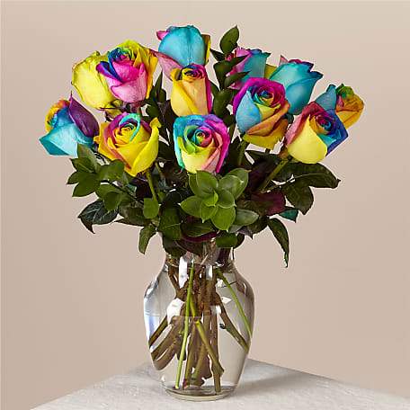Rainbow Rose Bouquet 12 Stem With Vase – Flowerica®