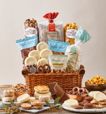 Introducing the NEW Signature Collection! Beautiful wicker basket filled with a selection of many delicious gourmet snacks and treats across our family of brands. This basket is guaranteed to delight anyone for any occasion, choose from our Deluxe, Grand, and Supreme basket.